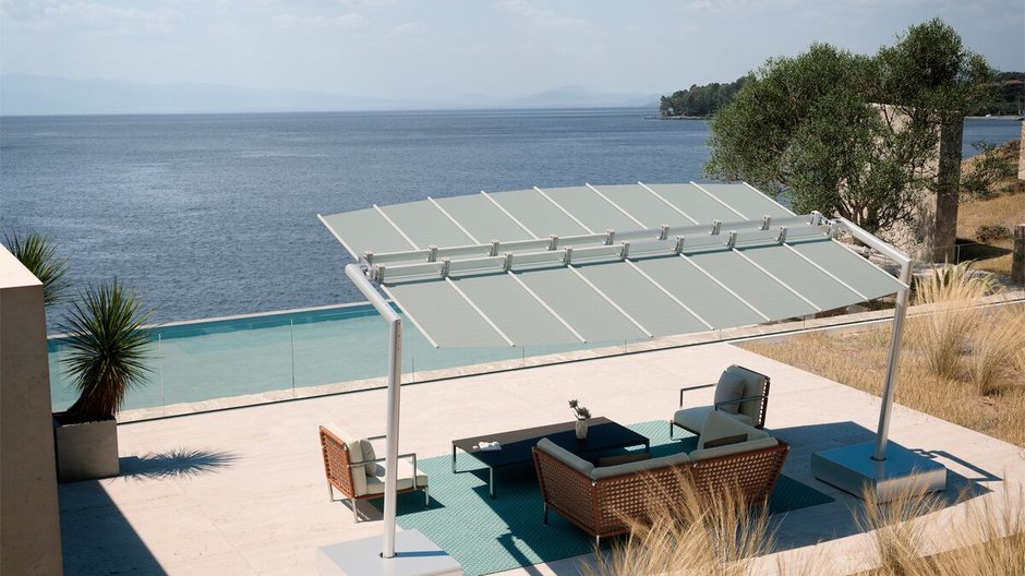 Wysokość parasola ogrodowego Flexy Zen (przy standardowym położeniu) 249 cm.